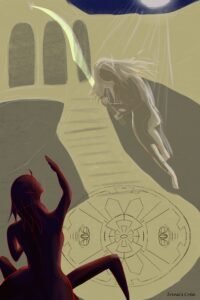 Explorations abandonnées Les directions prises et quittées. L’elfe qui avait d’abord les cheveux courts. La carte du Tarot dont la composition a complètement changé entre la première idée et la version finale. Ces images n’ont pas abouti — elles ont permis à autre chose d’aboutir.