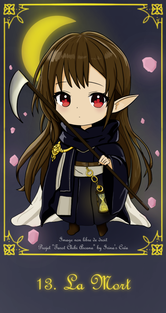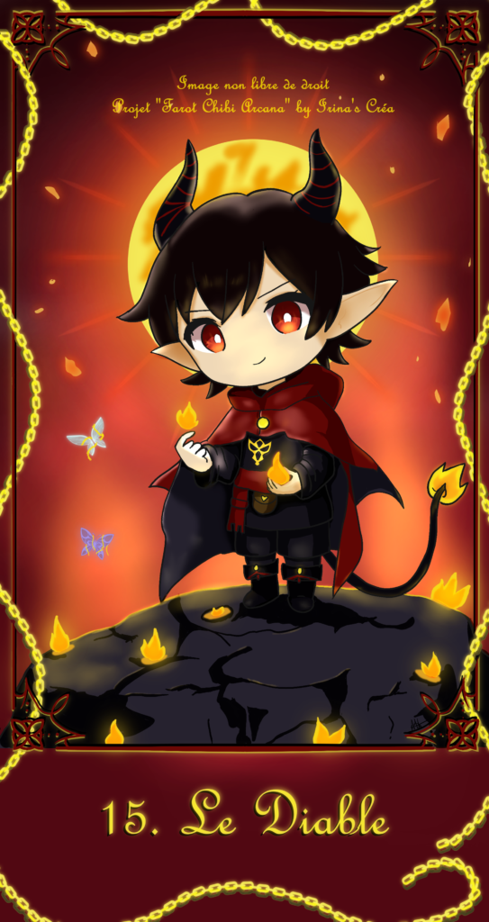 Le Tarot Chibi Arcana est un projet complet de 78 cartes et livret d’accompagnement, actuellement en cours de finalisation et de recherche d’éditeur.